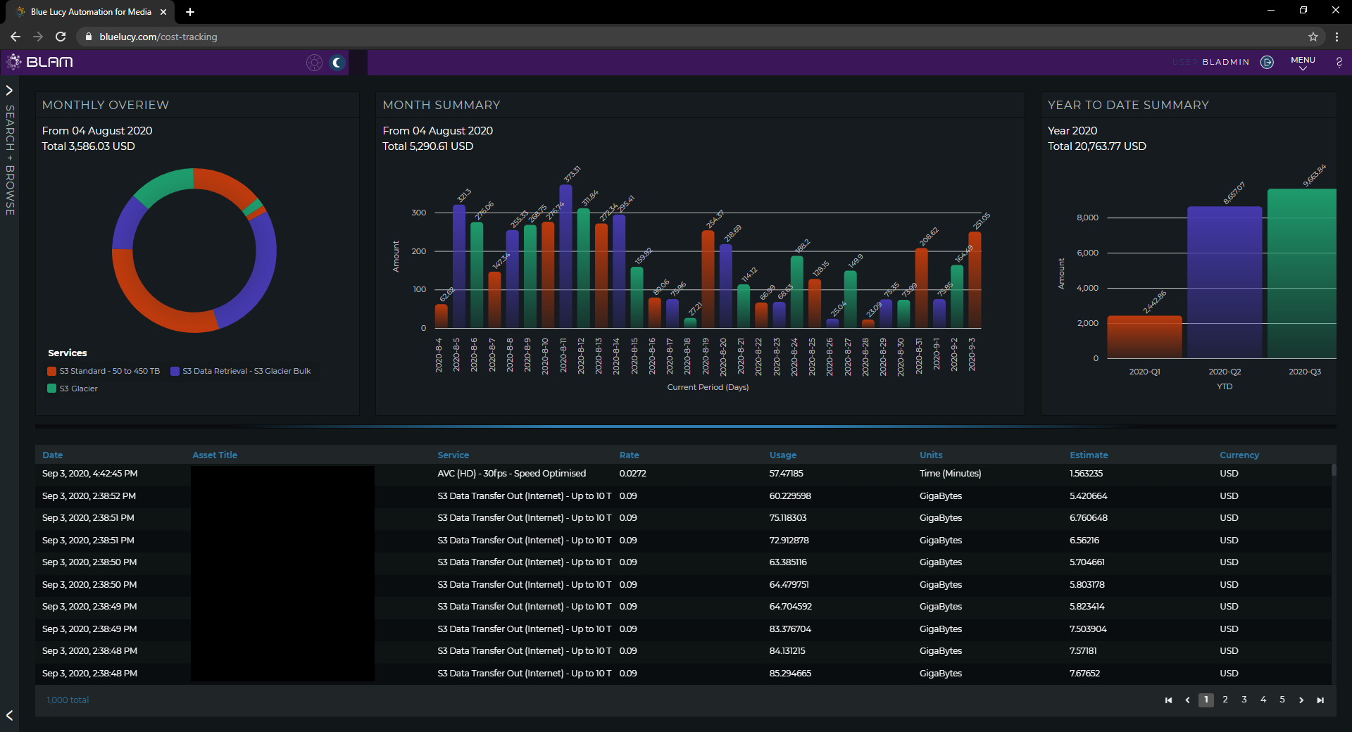 Although the cost of cloud provisioned services such as storage and media processing are cited by operators as the most important costs to track, BLAM allows a completely customisable set of parameters to be set. The cost management module in BLAM (BLAM Finance) has been designed-in from the outset and, as with all BLAM components, it provides for a high degree of configurability.