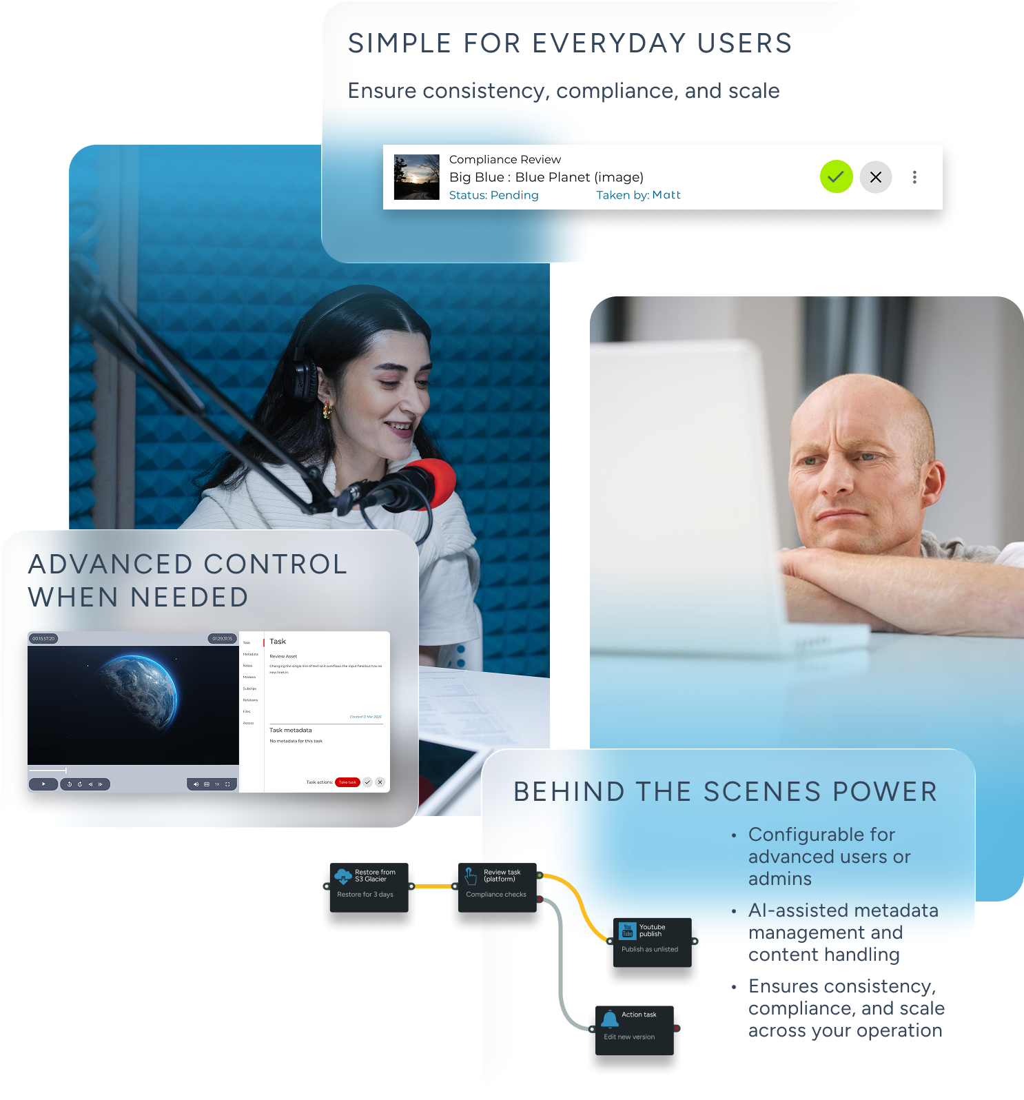 From everyday tasks to advanced orchestration, Blue Lucy makes complex content operations manageable, efficient, and scalable - whether you’re a media powerhouse or a global corporate content team.